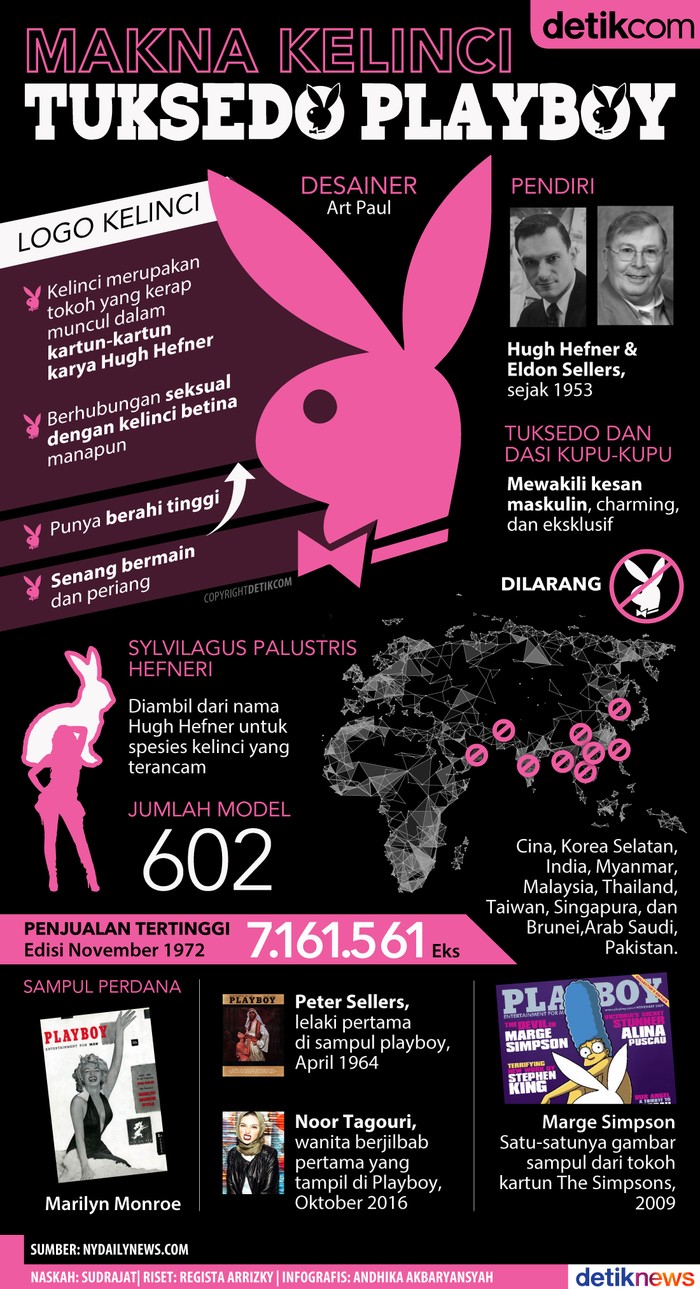 Infografis Makna Kelinci dan Tuksedo di Majalah Playboy Sudrajat - detikNews Jumat, 29 Sep 2017 08:16 WIB Andhika Akbariansyah Jakarta - Kelinci disebut punya berahi tinggi, sementara tuksedo mewakili kesan maskulin, charming, dan eksklusif (jat/jat) Infografis Lainnya Infografis Masih Liburan? Cek Lokasi Serambi MyPertamina di Rest Area hingga Bandara Infografis Pariwisata RI Catat Kinerja Solid di 2025, Devisa Capai US$ 13,82 Adhyaksa Awards 2025 Ini 6 Orang Sosok Jaksa Teladan Penerima Adhyaksa Awards 2025 playboy