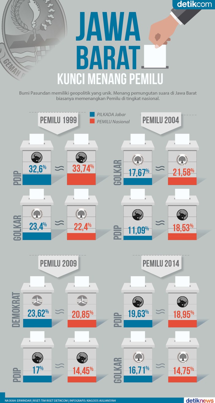 Jakarta - Benarkah memenangkan pemilu di wilayah Jawa Barat bakal otomatis memenangi pemilu secara nasional? Data berikut ini akan menjelaskannya.