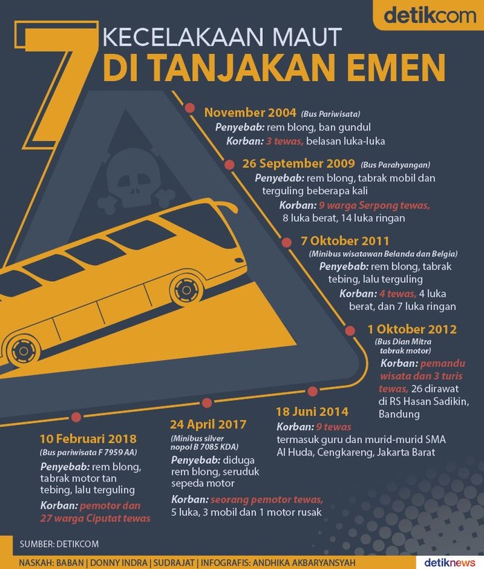 Jakarta - Sejak 2004, setidaknya terjadi tujuh kecelakaan dengan jumlah korban jiwa cukup banyak. Rem blong menjadi penyebab utama