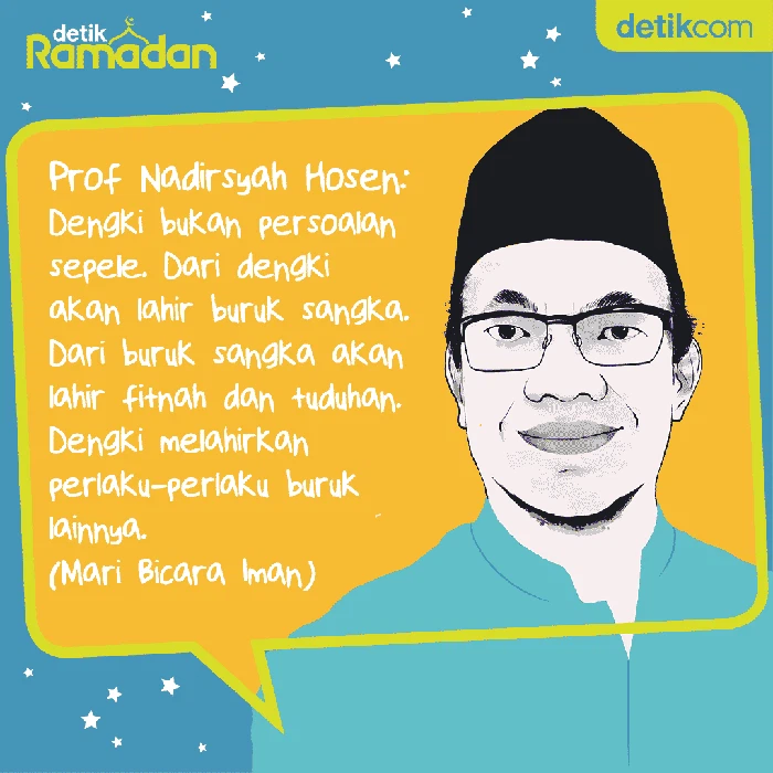 Jakarta - "Dengki bukan persoalan sepele. Dari dengki akan lahir buruk sangka. Dari buruk sangka akan lahir fitnah dan tuduhan. Dengki melahirkan perlaku-perlaku buruk lainnya."