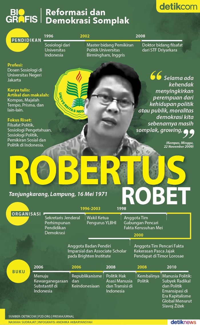 Jakarta - Robertus Robet adalah aktivis, pemikir, dan akademisi yang kritis terhadap kekuasaan sejak Orde Baru. Dia ditangkap polisi terkait lagu Mars ABRI yang dinyanyikannya saat aksi Kamis (28/2/).