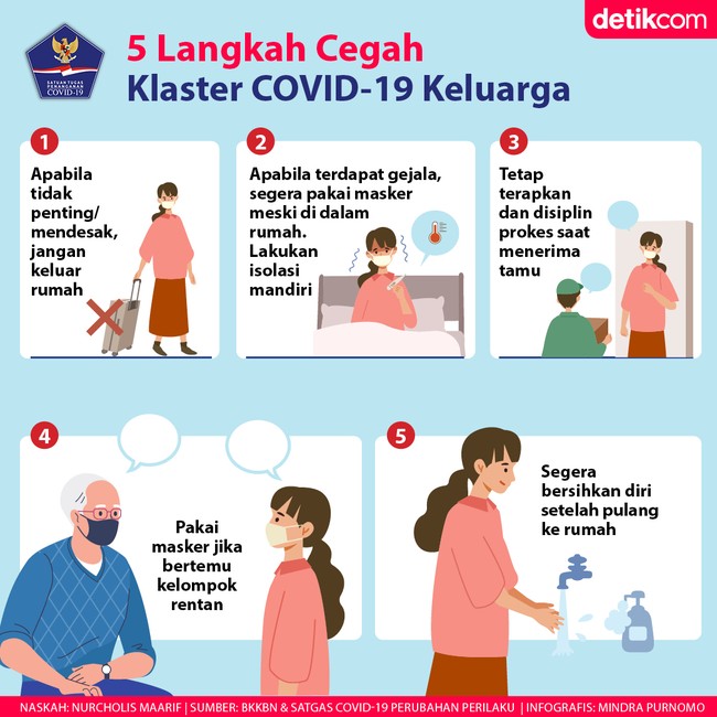 Jakarta - Klaster keluarga menjadi sorotan di tengah kenaikan kasus COVID-19 di Indonesia. Untuk itu yuk sama-sama mencegah terjadinya penularan virus ini di tengah keluarga.