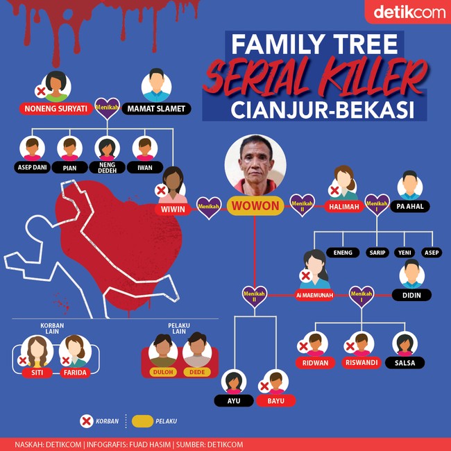 Berikut adalah silsilah para korban dan tersangka yang dihimpun dari kepolisian.