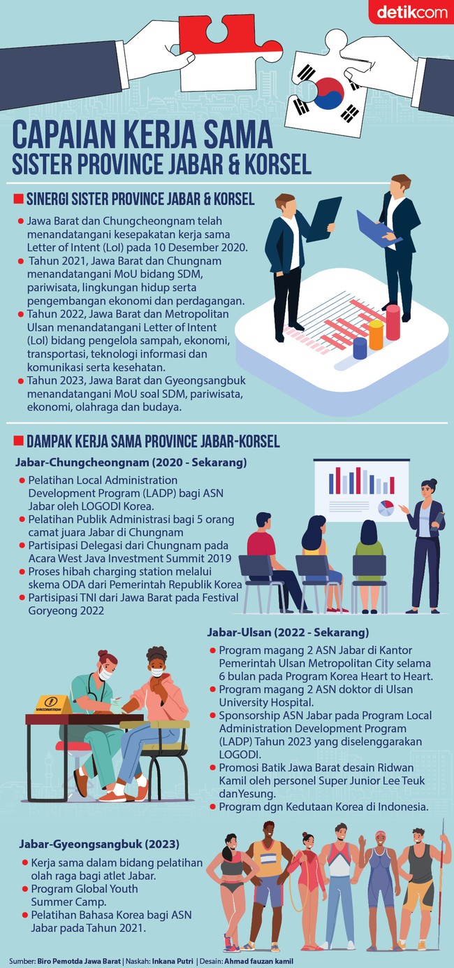 Jakarta - Pemerintah Provinsi Jawa Barat melakukan kerja sama Sister Province dengan Provinsi Chungnam, Gyeongsangbuk dan Metropolitan Ulsan, Korea Selatan. Terjalin sejak 2020, kerja sama ini membawa sederet manfaat bagi kedua negara.