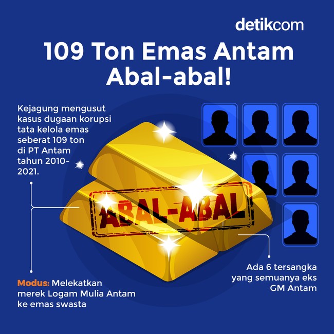 Jakarta - Kejagung mengusut kasus dugaan korupsi tata kelola emas seberat 109 ton di PT Antam tahun 2010-2021. Bagaimana modusnya?