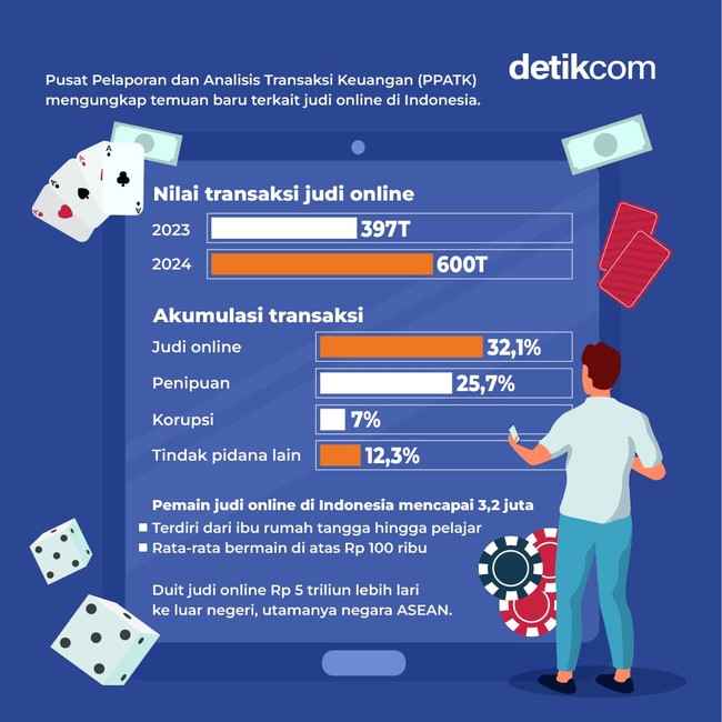 Jakarta - Pusat Pelaporan dan Analisis Transaksi Keuangan (PPATK) mengungkap temuan baru terkait judi online di Indonesia. Apa saja yang terungkap?