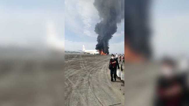 Diketahui pesawat dengan nomor penerbangan A319 itu sempat keluar dari jalur sebelum terlihat mengeluarkan api. Momen api yang melambung tinggi sempat terekam dalam video.
