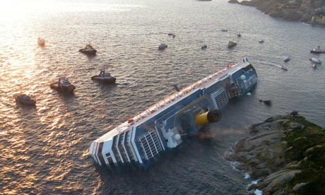 "Kami mendengar gemuruh keras, gelas dan piring jatuh dari meja, kapal miring dan lampu mati," kata seorang penumpang bernama Luciano Castro pada Reuters, Minggu (15/1/2012). Peristiwa itu terjadi pada Jumat 14 Januari di lepas pantai Tuscan, Italia, dan hingga hari Minggu upaya pencarian korban masih berlangsung.