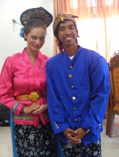 "Baju ini saya beli di Bandung, selendang di Toraja, ulot dari Solo dan sepatu sandal dari Semarang", katanya dalam bahasa Indonesia dengan fasih seperti dilansir dari rilis KBRI Moskow, Kamis (20/72012) waktu setempat. Dia datang ke KBRI Moskow beberapa hari lalu dengan mengenakan pakaian dari ujung rambut hingga ujung kaki buatan Indonesia.