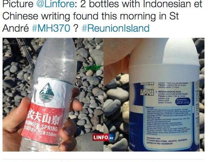 Di lokasi yang sama, ada juga koper rusak yang dikait-kaitkan dengan MH370. Ditambah pula dengan botol minuman bertuliskan huruf China dan sebuah botol mirip cairan pemutih pembersih noda bertuliskan Indonesia.