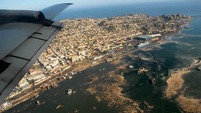 Begini penampakan tsunami Chile dari udara: