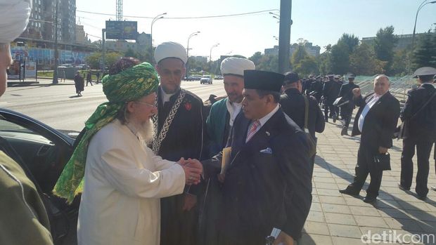 Dubes RI untuk Moskow Djauhari Oratmangun bersalaman dengan ulama Rusia (dok. KBRI Moskow).