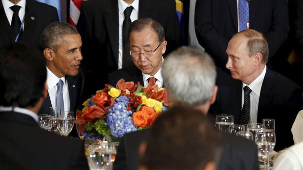 Barack Obama, Ban Ki-moon dan Vladimir Putin (REUTERS/Kevin Lamarque)