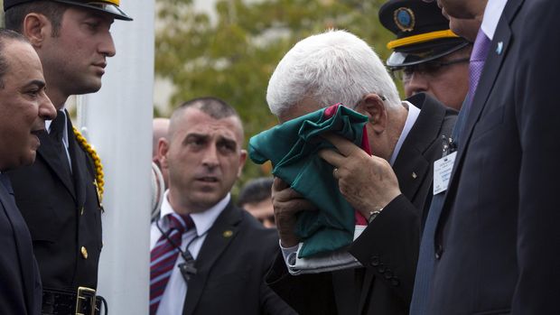 Presiden Palestina Mahmoud Abbas menghadiri prosesi pengibaran bendera ini bersama Sekjen PBB Ban Ki-moon pada Rabu (30/9) waktu setempat. Pemandangan mengharukan terlihat ketika Presiden Abbas sempat mencium bendera Palestina sebelum dikibarkan.