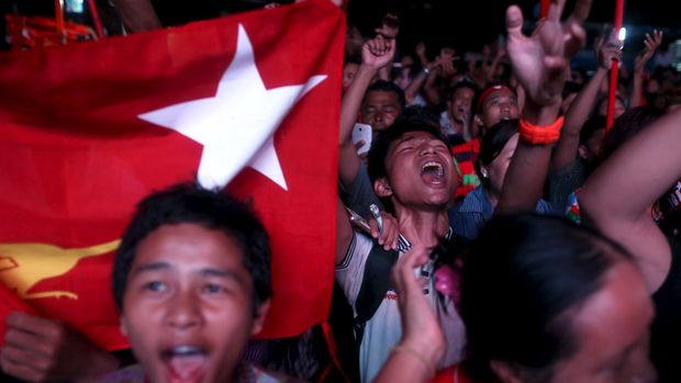 Dua puluh lima tahun setelah pemilu 1990, untuk kedua kalinya, hampir dipastikan Partai Liga Nasional untuk Demokrasi bakal menekuk partai yang disokong pemerintah, Partai Pembangunan dan Persatuan Solidaritas (USDP). Dari 54 kursi yang telah diumumkan oleh Komisi Pemilihan Umum kemarin, NLD menyapu 49 kursi.
