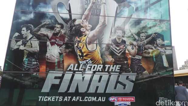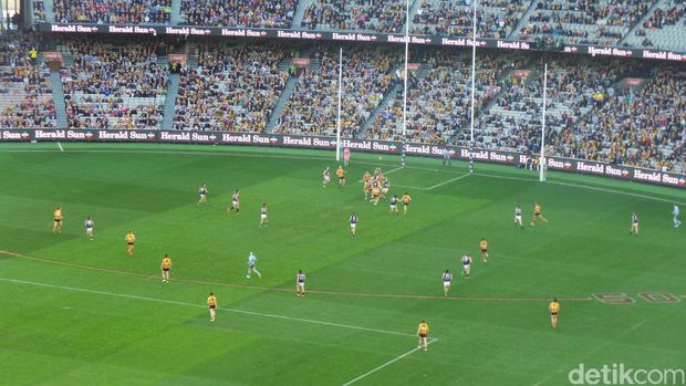detikcom sempat menyaksikan pertandingan footy dalam Australian Football League (AFL) dalam pertandingan Hawthorn versus Carlton, dua klub footy yang berbasis di Melbourne, Victoria di stadium Melbourne Cricket Ground (MCG) pada September 2015 lalu.