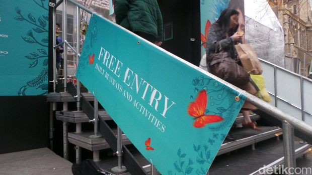 Ya, MSFW digelar di ruang terbuka di City Square dalam suatu tenda putih transparan berukuran besar dan berpendingin udara. Di depan pintu masuk tenda itu tertera kata "Free Entry" alias gratis.