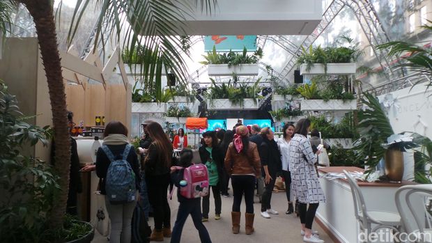 Di dalam, ada stan kopi dengan barista. Warga bisa memesan kopi atau coklat panas gratis. Ada pula pemilik merek busana yang koleksinya hendak dipamerkan di catwalk menyediakan kue-kue kering dan foto booth gratis. Tak lupa jajaran baju-baju keluaran terbaru juga dipajang.