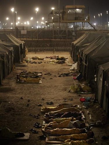 Para tahanan di Kamp Bucca tidur di luar pada tahun 2008 lalu (AFP PHOTO/DAVID FURST) |