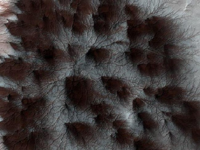 Seperti dilansir news.com.au, Kamis (14/1/2016), gambar itu diambil oleh kendaraan NASA yang bernama Mars Reconnaissance Orbiter. Kendaraan itu mengambil gambar yang menampilkan permukaan tidak rata, yang dipenuhi beberapa cekungan yang membentuk pola seperti pecahan cahaya.