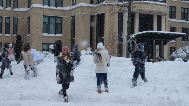Tak hanya itu, sebagian warga bahkan memanfaatkan momen tersebut untuk bermain, seperti saling lempar salju dan berseluncur. Hal ini terutama dilakukan saat intensitas salju sedikit mereda. Mereka tertawa-tawa dan terlihat gembira.