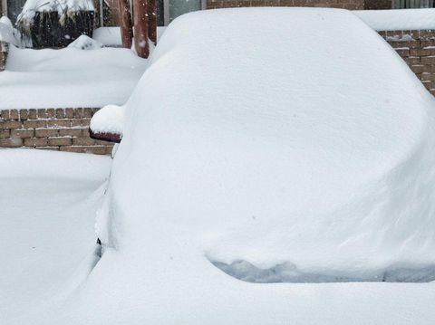 Salju tebal tampak menimbun mobil (Awan Prasetyo) |