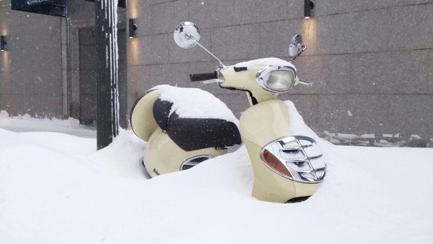 Sebuah sepeda motor tertimbun salju tebal (Awan Prasetyo) |