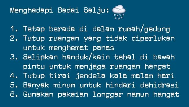 Menghadapi badai tersebut, warga Indonesia dianjurkan untuk tinggal di dalam rumah dan menghindari bepergian. Langkah-langkah antisipasi yang bisa dilakukan antara lain menutup rapat seluruh pintu dan jendela rumah dan banyak minum air putih untuk menghindari dehidrasi. Selain itu dianjurkan pula untuk sedia berbagai peralatan seperti lampu senter, alat pemadam kebarakan, dan kotak P3K.