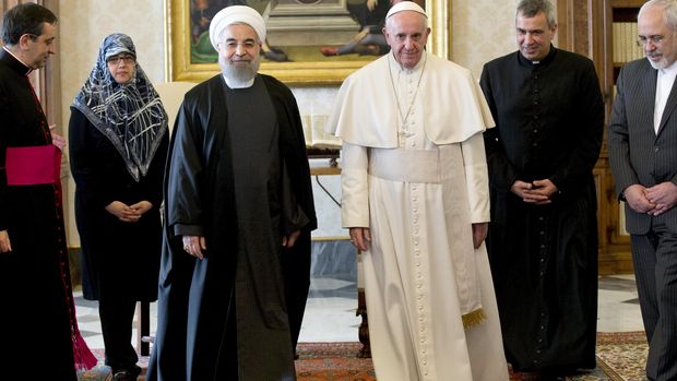 Rouhani menghabiskan waktu 40 menit berbicara secara pribadi dengan Paus Fransiskus, dalam kunjungannya ke Vatikan pada Selasa (26/1) waktu setempat. Kunjungan ini dilakukan usai sanksi internasional Iran dicabut setelah kesepakatan nuklir dengan negara-negara Barat diterapkan.