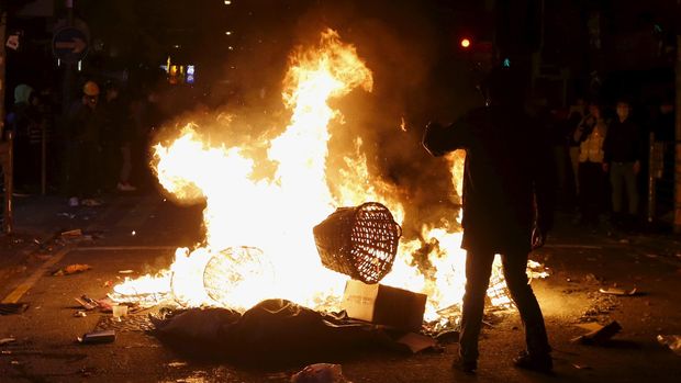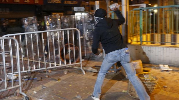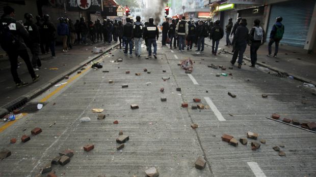 Seperti dilansir Reuters, Selasa (9/2/2016), beberapa demonstran melemparkan batu bata ke arah polisi setempat. Sedangkan demonstran lainnya merusak rambu-rambu jalanan dan membakar keranjang sampah di wilayah Mong Kong sebagai luapan kemarahan.