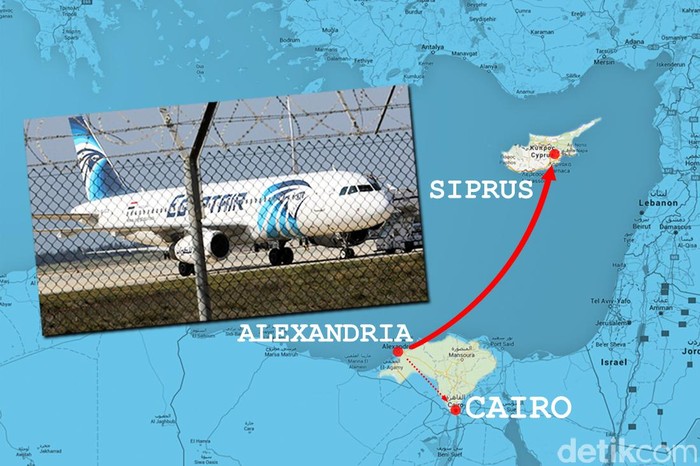 Bertolak dari bandara internasional Borg El Arab Alexandria, pesawat yang seharusnya mendarat di bandara internasional Cairo berbelok ke arah laut Mediterania di utara Mesir. Pesawat tenyata mengarah ke Siprus akhirnya mendarat di bandara internasional Larnaca.
