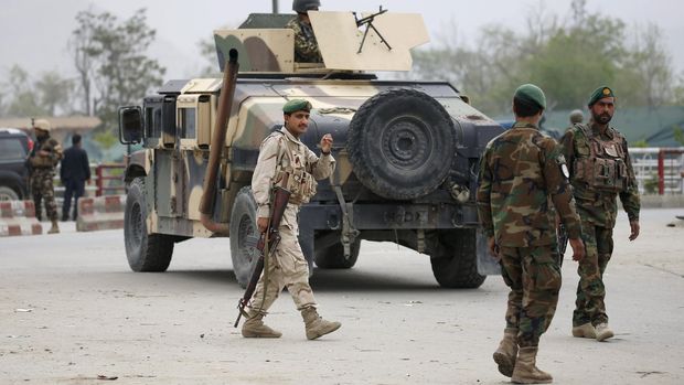 Tentara Afghanistan siaga di lokasi usai ledakan (REUTERS/Omar Sobhani)