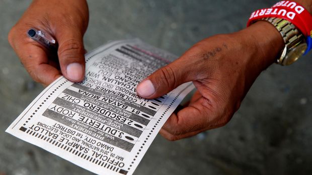 Pendukung Duterte menggunakan hak suaranya (REUTERS/Erik De Castro) |