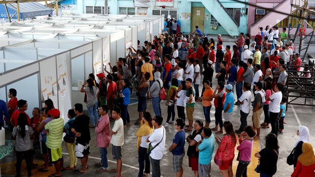 Warga Filipina antre untuk memilih di kota Davao (REUTERS/Erik De Castro)