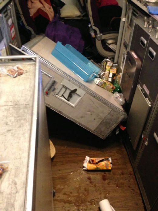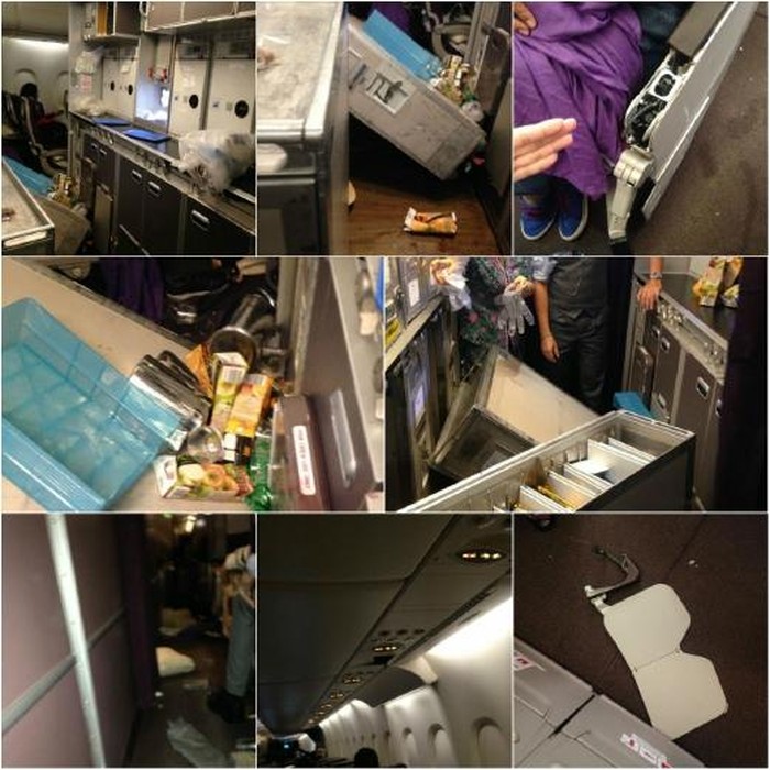 Dalam sejumlah foto yang beredar di media sosial, seperti dilansir media Malaysia, New Straits Times, Senin (6/6/2016), terlihat situasi di dalam kabin yang penuh kekacauan menunjukkan seberapa parahnya insiden turbulensi ini. Salah satu foto menunjukkan kereta makanan yang terguling.