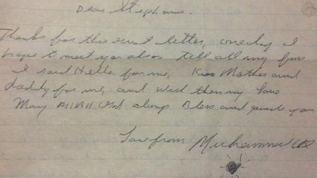 Surat balasan Ali itu berbunyi: "Halo Stephanie, terima kasih atas suratnya yang indah, saya juga berharap bisa bertemu denganmu suatu hari. Tolong beritahu penggemar saya, saya mengatakan, 'Halo', dari saya. Titip cium untuk Ibu dan Ayah dan saya mendoakan mereka. Semoga Allah selalu memberi berkah dan membimbingmu. Sayang dari Muhammad Ali."
