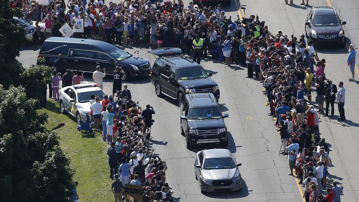 Iring-iringan mobil jenazah yang terdiri atas 17 kendaraan akan melewati pusat komunitas warga kulit hitam di Kentucky tersebut. Warga tidak keberatan panas-panasan di bawah matahari demi menyaksikan sekilas peti jenazah Ali dari dekat.