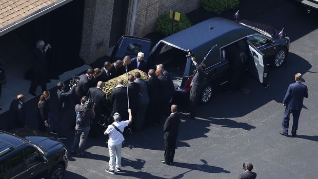Peti jenazah Muhammad Ali dimasukkan ke dalam mobil jenazah (REUTERS/Adrees Latif)