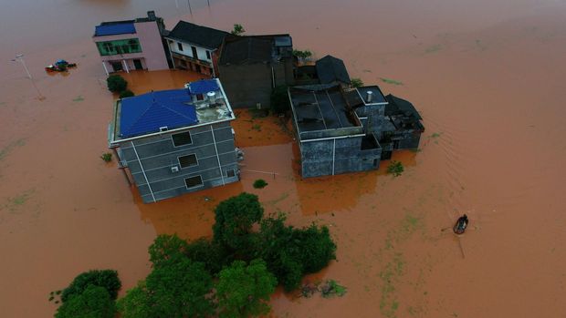 Tempat tinggal warga di Provinsi Hunan dikepung banjir (REUTERS/Stringer) |