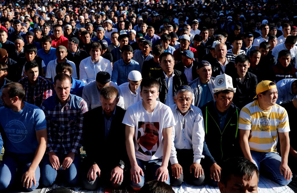 Umat muslim tampak khusyuk melaksanakan ibadah Salat Id (Foto: Reuters/Maxim Zmeyev)