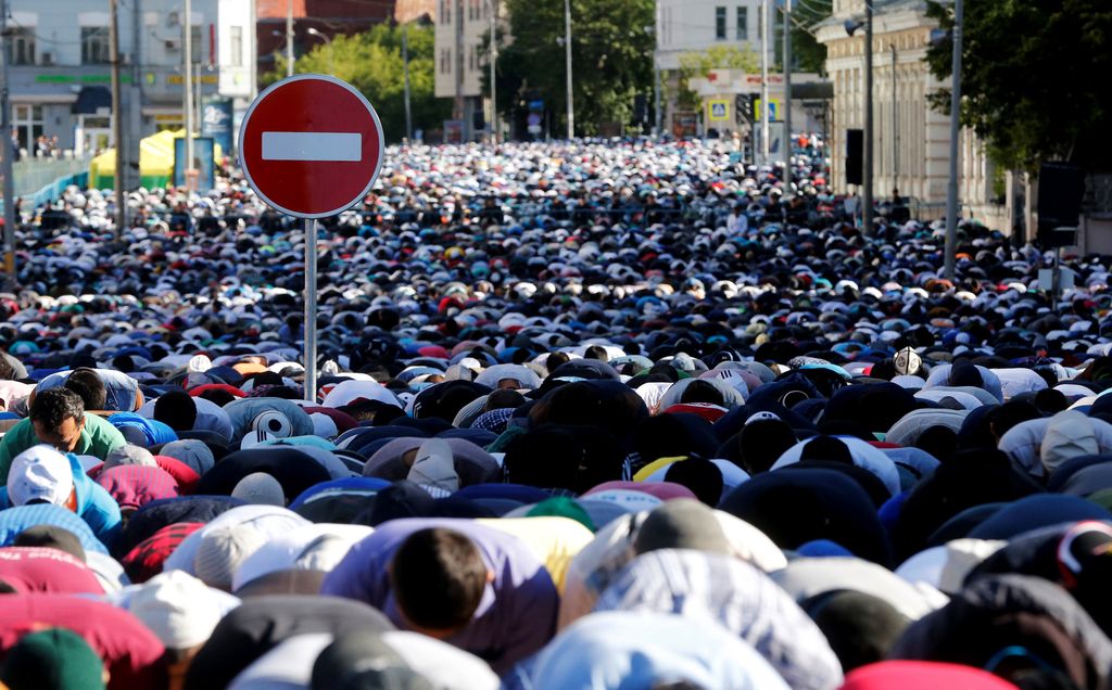 Jalanan ditutup karena ramainya jemaah yang melaksanakan Salat Id (Foto: Reuters/Maxim Zmeyev)