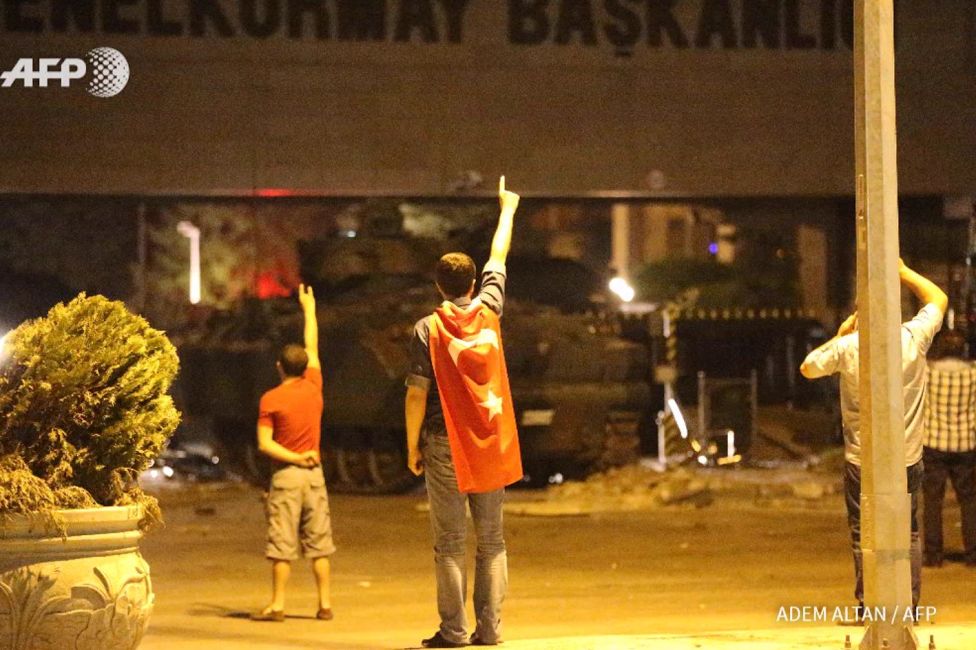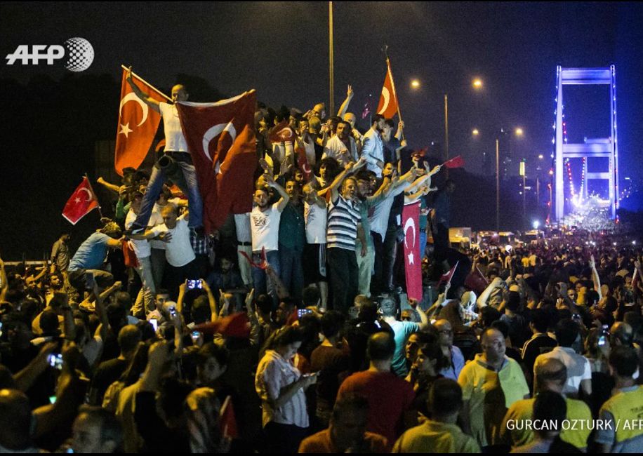 Ribuan rakyat Turki memenuhi jalan Istanbul dan Ankara. Mereka membawa bendera Turki menolak kudeta.