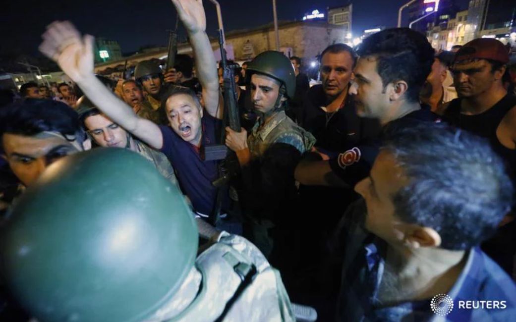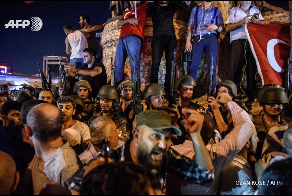 Demikian juga dari foto-foto AFP, terlihat masyarakat memenuhi Taksim Square di Istanbul. Mereka meneriakan yel yel menolak kudeta. Beberapa tentara pendukung kudeta dan masyarakat terlihata adu dorong.