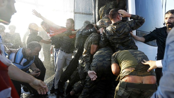 Dalam pernyataannya, Erdogan menyebut 'kelompok teror' yang dipimpin Gulen telah merusak tubuh militer Turki. Sebagian besar personel militer Turki dari berbagai pangkat yang terindikasi mendukung kudeta itu telah ditangkap. Gulen sendiri telah menyangkal tudingan itu dan balik menuding Erdogan mendalangi percobaan kudeta itu.