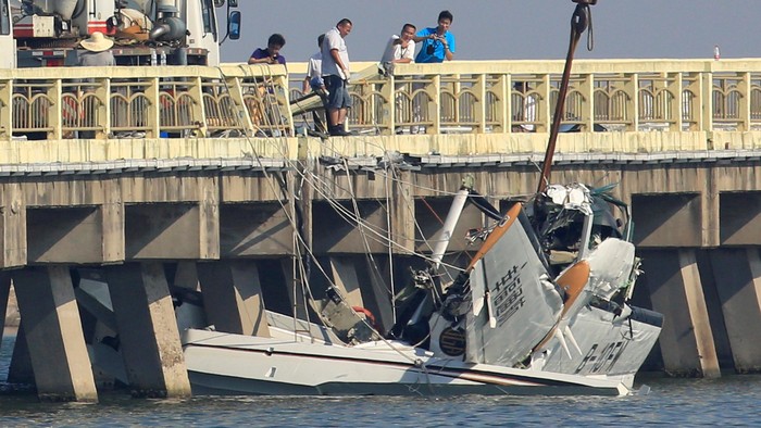 Seperti dilaporkan media lokal, The Paper dan dilansir AFP, Rabu (20/7/2016), pesawat ini menabrak jembatan jalan raya di distrik Jinshan pada Rabu (20/7) waktu setempat. Saat itu, pesawat ini tengah melakukan uji coba penerbangan dengan membawa 10 orang di dalamnya, termasuk awak pesawat.