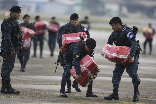 Foto: Polisi antinarkotika Guatemala mengangkat kokain yang disita (JOHAN ORDONEZ/AFP) |
