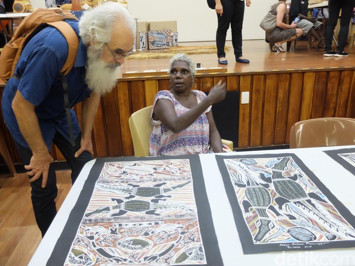 Lukisan warga Aborigin Suku Yolngu. Suku Yolngu melukis dan menjual lukisan ini untuk mendapatkan penghasilan (Foto: Ikhwanul Khabibi/detikcom)