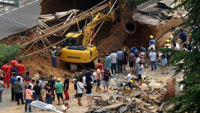 Dilaporkan surat kabar setempat, Beijing Youth Daily, seperti dilansir AFP, Rabu (3/8/2016), lubang dengan panjang 30 meter dan lebar 20 meter serta kedalaman 9 meter ini, tiba-tiba muncul saat hujan deras melanda pusat kota Zhengzhou, Provinsi Henan.