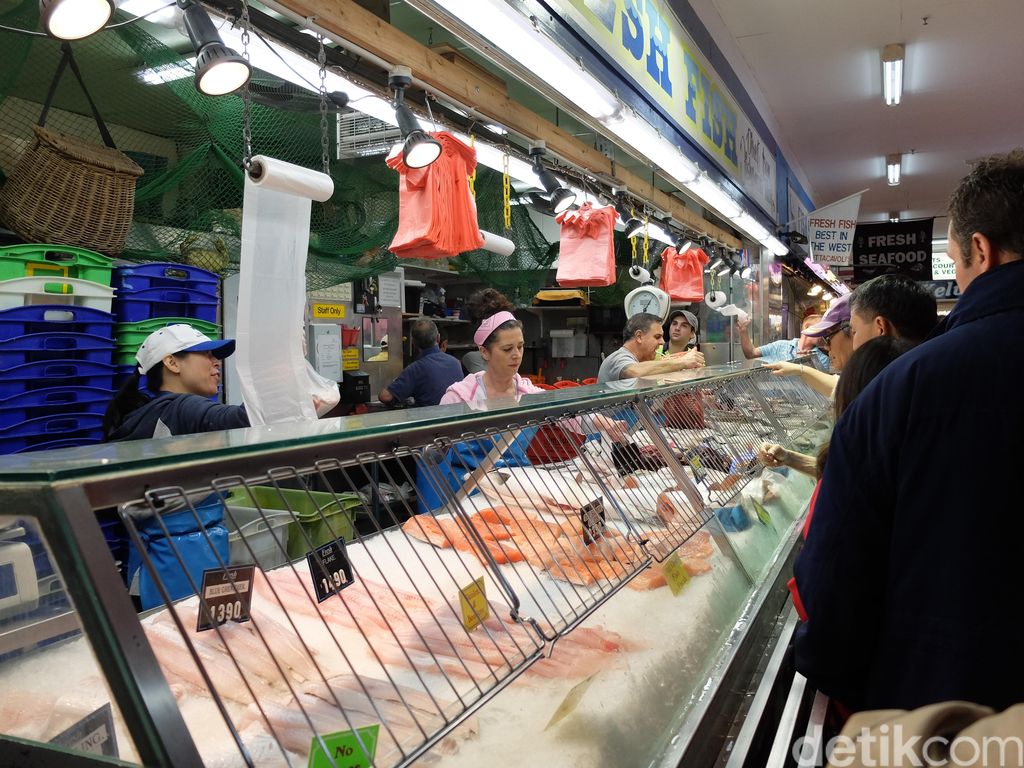"Pengunjung sama sekali dilarang menyentuh ikan yang dijual, hal tersebut agar kualitas produk tetap terjaga. Karena semua yang dijual benar-benar masih segar. Anda bisa lihat sendiri bagaimana segarnya ikan-ikan di sini," kata Susie Wickes, pemandu dari kantor pemerintah negara bagian Victoria.