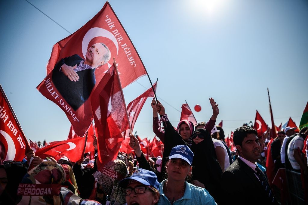 Sebagaimana dilansir AFP, Senin (8/8/2016), demonstrasi mendukung Erdogan ini digelar di alun-alun Yenikapi. Lokasi ini berubah menjadi lautan merah dan putih, corak khas bendera Turki. Massa juga mengenakan ikat kepala yang dihiasi tulisan nama Erdogan.